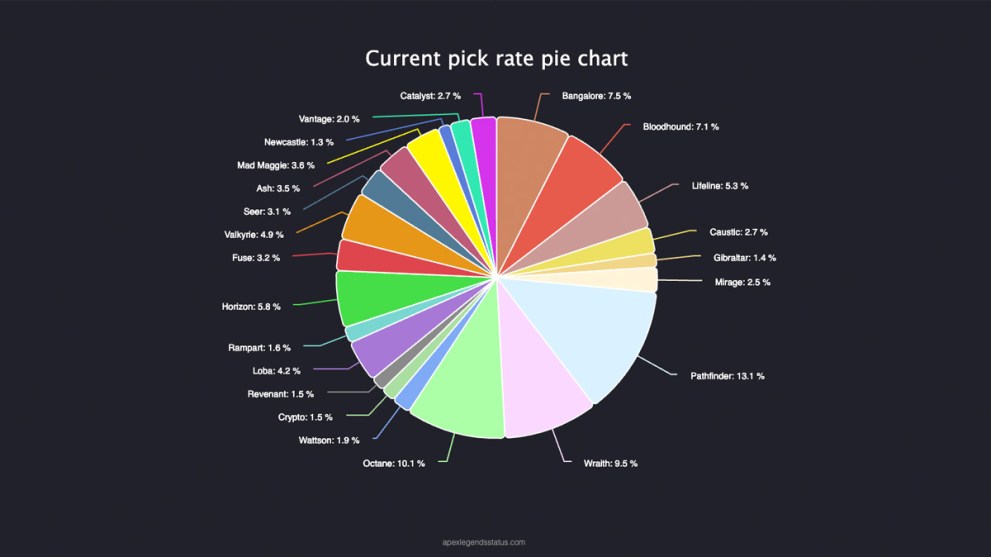 Apex Legends Pie Chart showing Legend pick-rates