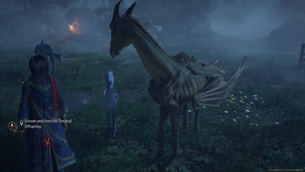 This challenge is conveniently part of a sidequest called “Foal of the Dead” given to you by Deek the House Elf. It requires you to obtain the unique Breeding Pen conjuration item for the Vivarium in the Room of Requirement, which can be purchased from the Tomes and Scrolls shop in Hogsmeade for 1,000 gold. Once you have it, conjure a pen in any one of the vivarium spaces you’ve acquired, though for breeding Thestrals Deek recommends putting it in the swamplands.