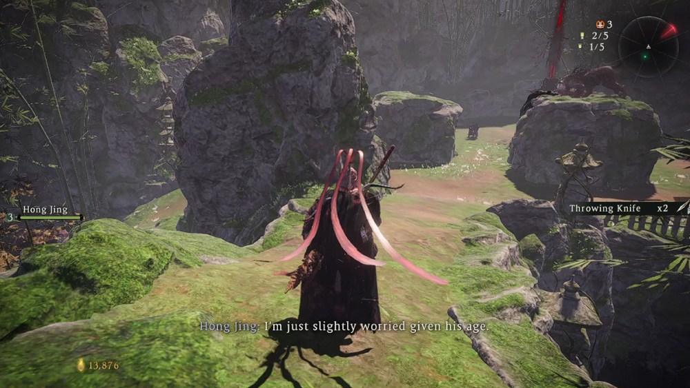 The first will patrol the road, while the second beast will be behind a row of old bamboo you can destroy. You can try to taunt the first one into approaching you and pulling it away from the other Changgui. Of course, if you are confident about your skill, you can take them both simultaneously.