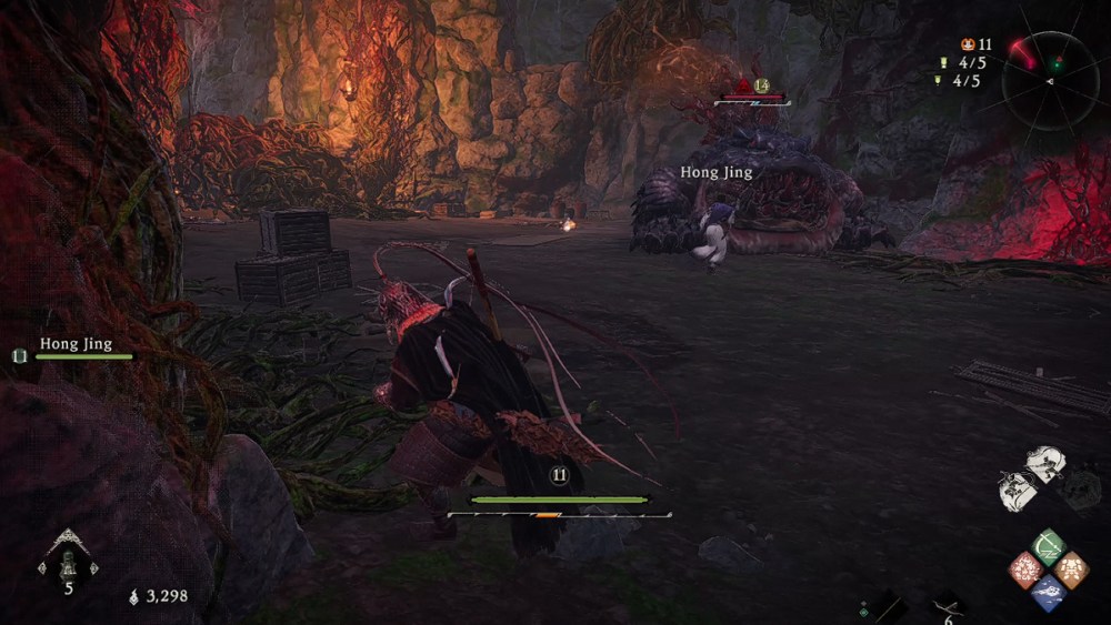 You will see a small pavilion containing a chest, but don’t be too hasty to open it. A Zhu Yan is waiting on top of the roof, and you must kill it first before taking the path behind the structure. You will enter a small area containing one Huoshu and the first Marking Flag.