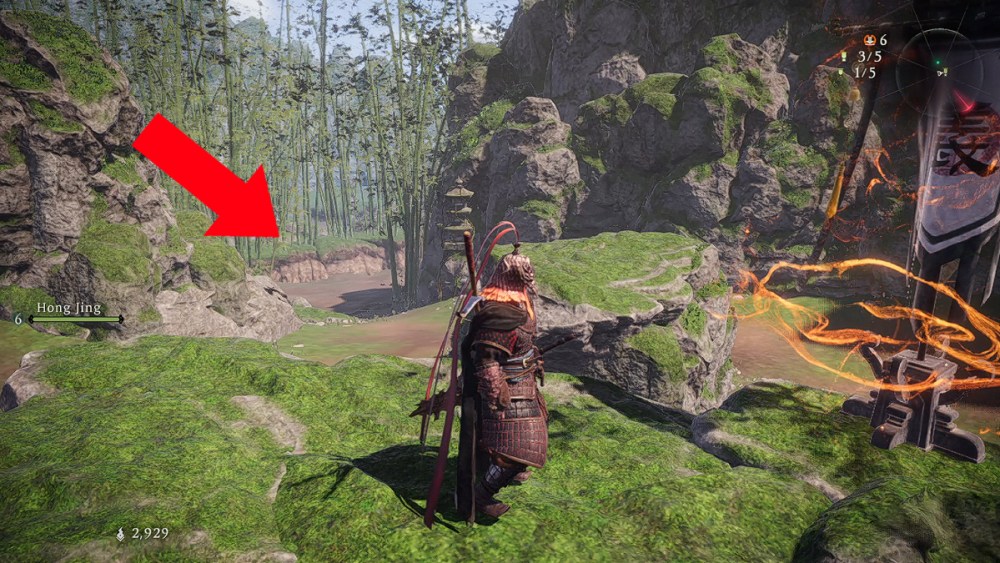 A large Huoshu will notice your presence and attack you from behind a row of bamboo. Keep your distance when it’s about to die since it will explode and hurt you if you are too close. Once you defeat it, you will find the second Battle Flag.