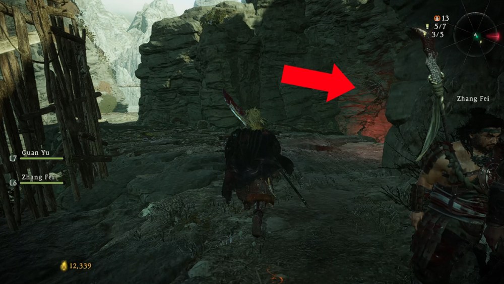 To reach the last Battle Flag, you can immediately leap into the river below, where you must defeat three Shuigui. Then, you can enter the cave by passing through a small waterfall.