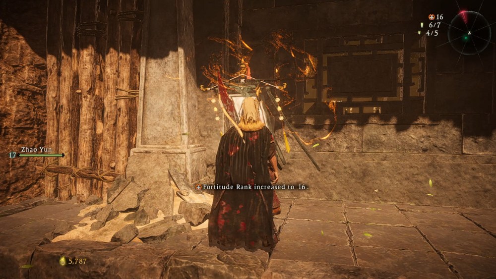 After you beat Zhuyan, continue progressing into the next area. The sixth Battle Flag is hidden inside a cave, which you can reach by turning right after dropping down a ledge.