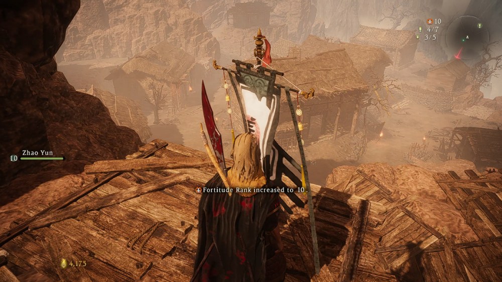 After progressing through the area, you will soon face a group of enemies and meet your new companion, Zhao Yun. The second Battle Flag will be at the end of a sloping trail and close to the locked shortcut to the village.