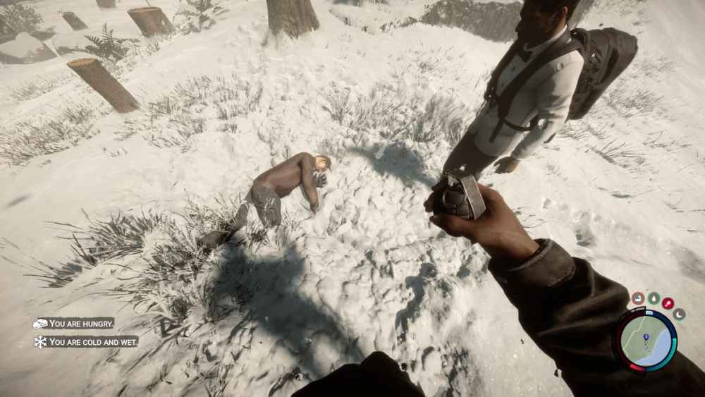 Or so I thought. As it turns out, the cannibals seem to have some sort of strange vendetta against poor old Kelvin. Even in his endless sleep, there’s no respite for the poor lad. To my utter disbelief –and a buddy of mine who had joined my game–, the cannibals stomped their way into the shrine, picked up Kelvin, and threw his corpse out the window!
