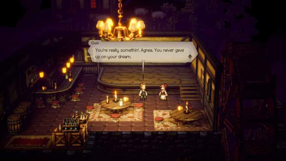Much like Tressa before her, Agnea is a bright-eyed youth with a dream. Her backstory, where she tries to recapture the glory of the stage once held by her deceased mother, is a nice little touch, but the remainder of her tale maintains your average ‘good kid from a small town combatting the wickedness of mainstream excess’ beat. It only edges out Tressa because it follows a logical progression, introducing a suitable foil and then delivering by the narrative’s end. It’s tidy, if nothing else.
