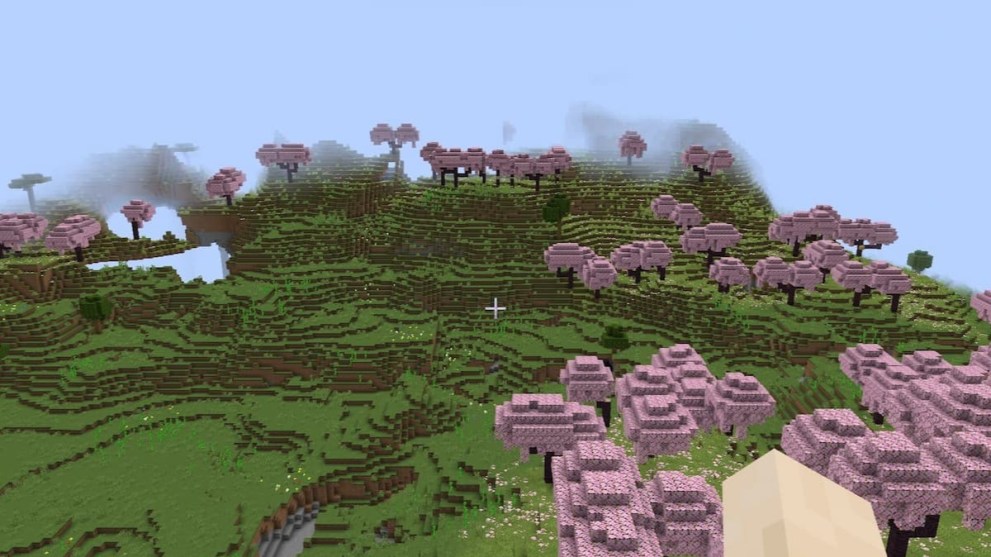 Reddit user Jereaux previously found this Sakura forest inside a massive crater in the Snapshot and Preview versions, and surprisingly, it still works for Minecraft 1.20. Since the biome attracts animals, you can capture them to build your own farm, from the buzzing bees to the adorable pigs. You’ll also notice a mixture of the Snowy Tundra and the Cherry Grove biome as the snow falls on top of the trees.