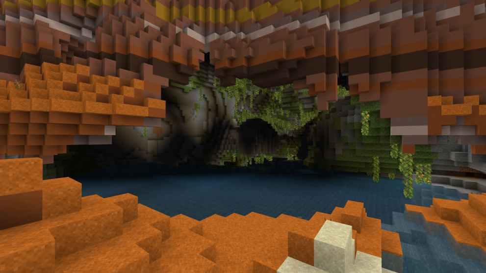 While the Badlands are primarily known for their Terracotta layouts, this Minecraft 1.20 seed from Reddit user carcar134134 switches it up by adding the exuberant greenery of the Lush Caves. Once inside, you’ll get lost in its vast layout, where you can use the Glow Berries as a guide. Players can also check out a nearby Mineshaft along the coast to collect treasures deep inside.