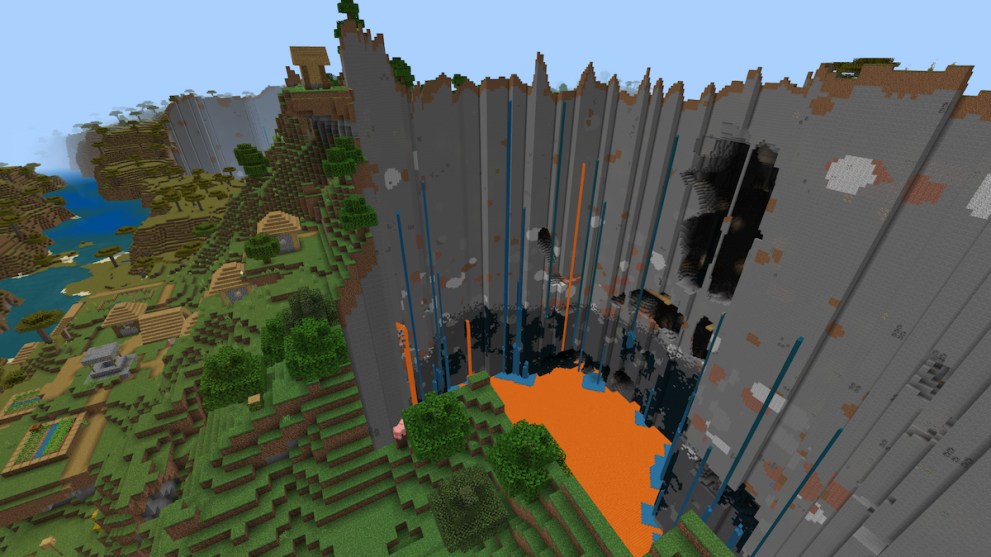 Even though I’ve seen many ravines before, I’ve never encountered one quite like this one. The Minecraft 1.20 seed was found by Reddit user GamesharePsn, and it has a ton of unique features outside of its already bizarre design. One of the first noticeable ones is the village to the left, along with various explorable caves and different biomes within walking distance.