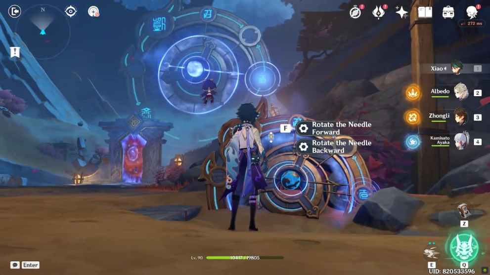 Once you reach the second zone of the puzzle, you will have to rotate the compass forward until it displays the “The needle is stuck in the tree. This is as far as it can turn…” message on the screen. After that, use the portal and destroy the small sakura tree right in front of the Fantastic Compass.