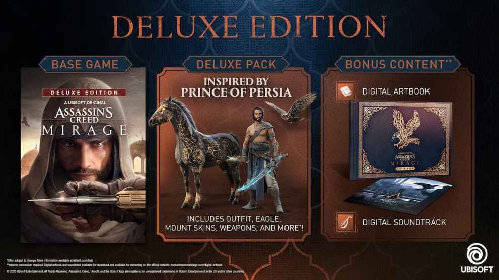Longtime fans of Ubisoft games will certainly want to get their hands on Assassin’s Creed Mirage Deluxe edition, as it features an exclusive set inspired by the Prince of Persia series. You can look forward to the following content from this Deluxe Pack: