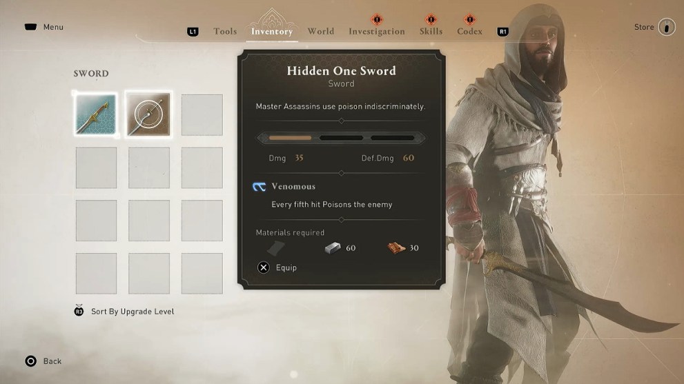 The Hidden One Sword has a base stat of 35 Dmg and 60 Def.Dmg. It will also apply Poison on every fifth hit that lands on an enemy. It’s definitely a good weapon, especially for new players who don’t have the Sand Sword from the deluxe edition.