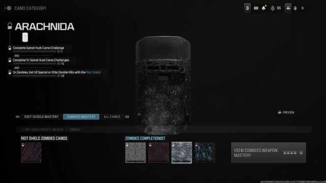 | Spinel Husk | Get 300 kills with a Pack-a-Punched Riot Shield |