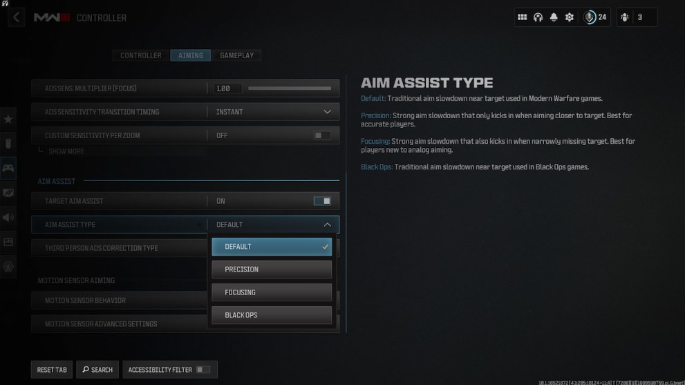 Aim Assist Type is the main setting to play with here, as it offers four unique types that will benefit different players and their playstyle. Default offers the most value as a reliable all around option, but for more seasoned players with good accuracy can switch to Precision.