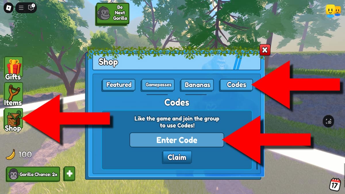 To redeem 100 Players vs 1 Gorilla codes successfully, follow the steps below: