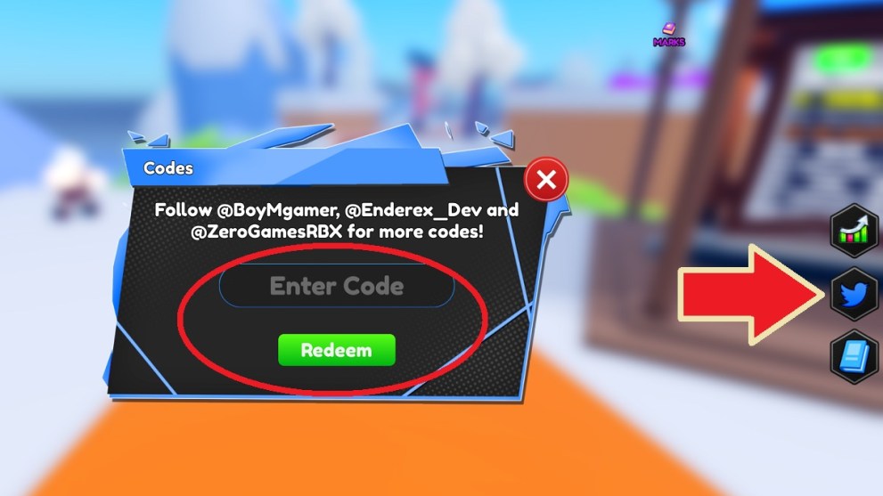- On the right-hand side, you’ll see a Twitter icon. That’s the code redemption page. Select it to open.
