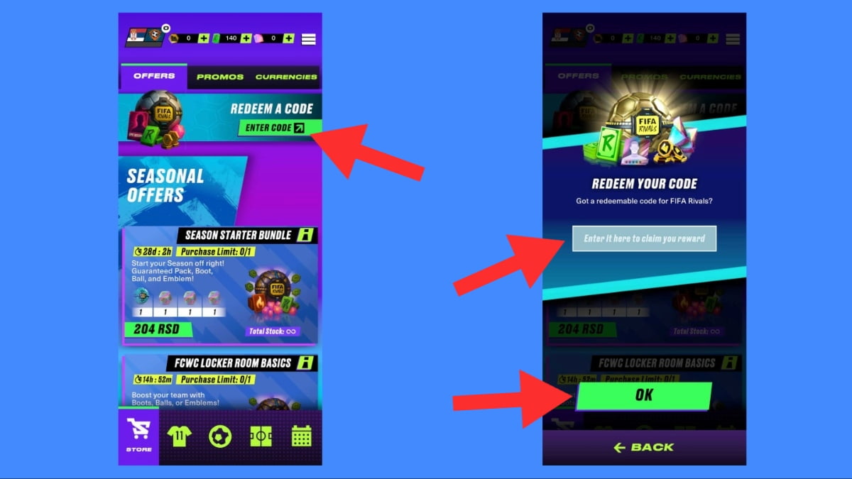Follow these steps to redeem codes in FIFA Rivals: