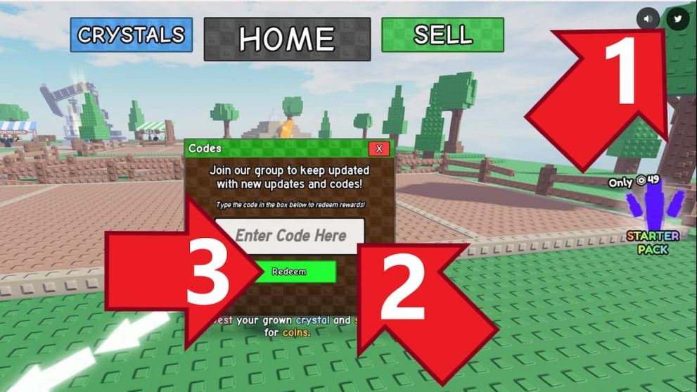 Let’s break down the process of redeeming Grow Crystals! codes into a few simple steps: