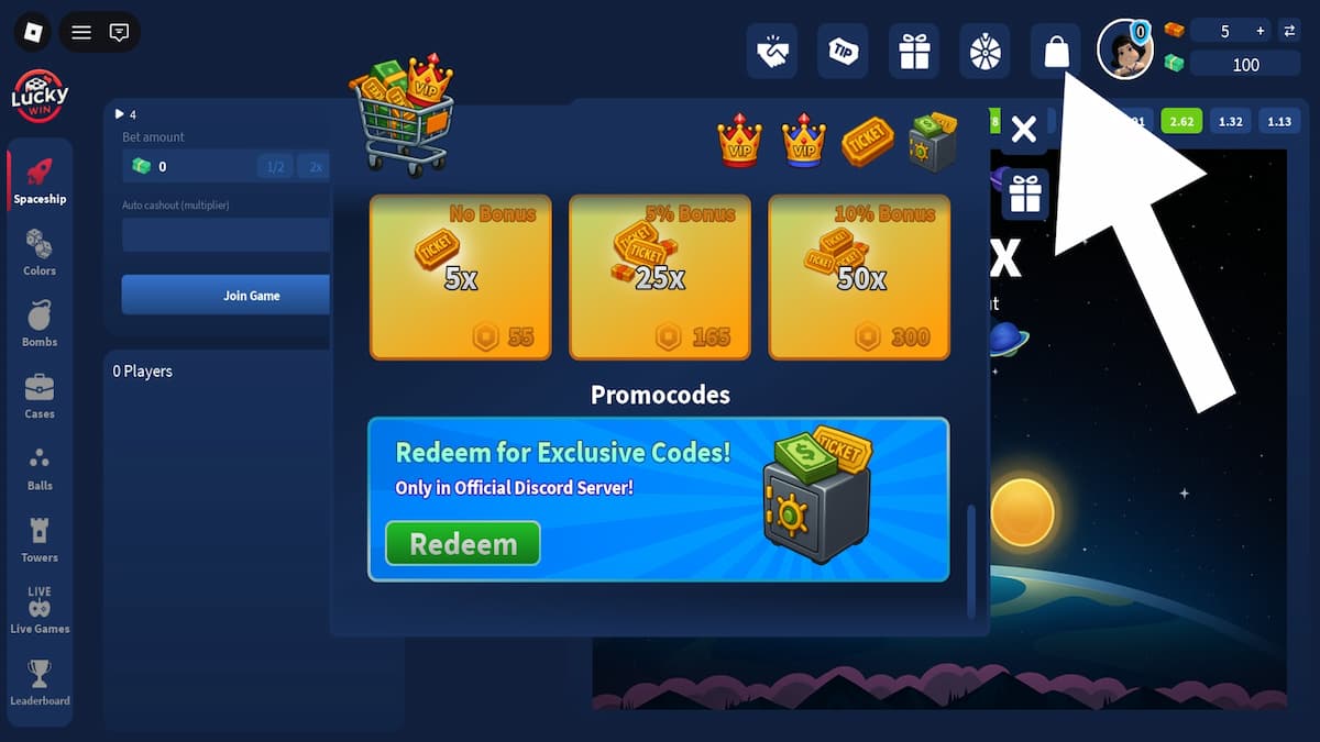 - Click on the Redeem button in the Promocodes section.