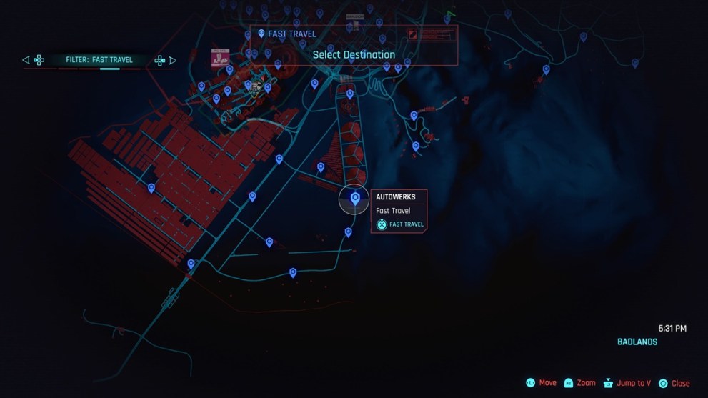 I don’t know if everyone feels this way, but fast travel in Cyberpunk 2077 is an annoying chore. The issue is that it can’t be done anywhere. Instead, you have to find specific terminals to do it, and even then, you can only fast travel to found terminals. The density of these things also varies wildly. Somewhere like Watson might be covered in them, and you will find them by accident, but the Badlands? Nope, you gotta trek to where the next one MIGHT be unless you went out of your way to find them all for the Frequent Flyer trophy/achievement early on.