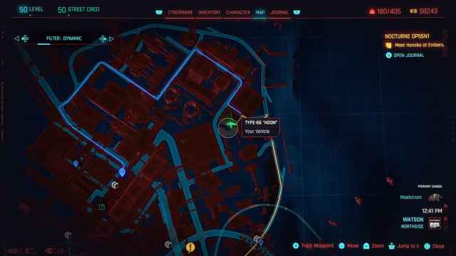 2. Head to the far northeast warehouse complex on the Watson map. Drivable roads are limited in Watson’s Northside district, so bring a dirt vehicle and do some off-roading to get there. You can also opt to place a waypoint in front of the warehouse, doing so will give you a GPS driving route across the perimeter of Northside. Here’s the exact pin location of the Ken Block car.