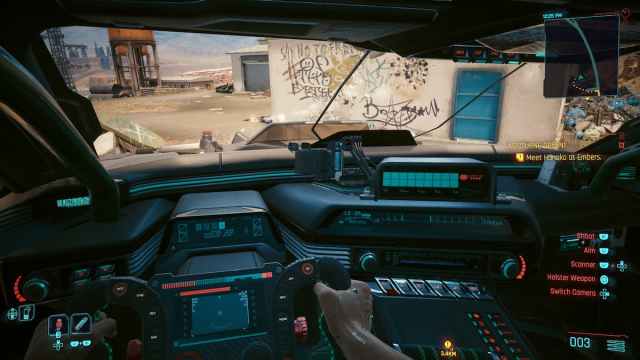 4. Walk up to the car and Johnny Silverhand will appear before you telling you to find a way in. He’s particularly excited about this barn find because it was apparently an old part of his collection. The quest will finally initiate, telling you to “search the warehouse”.