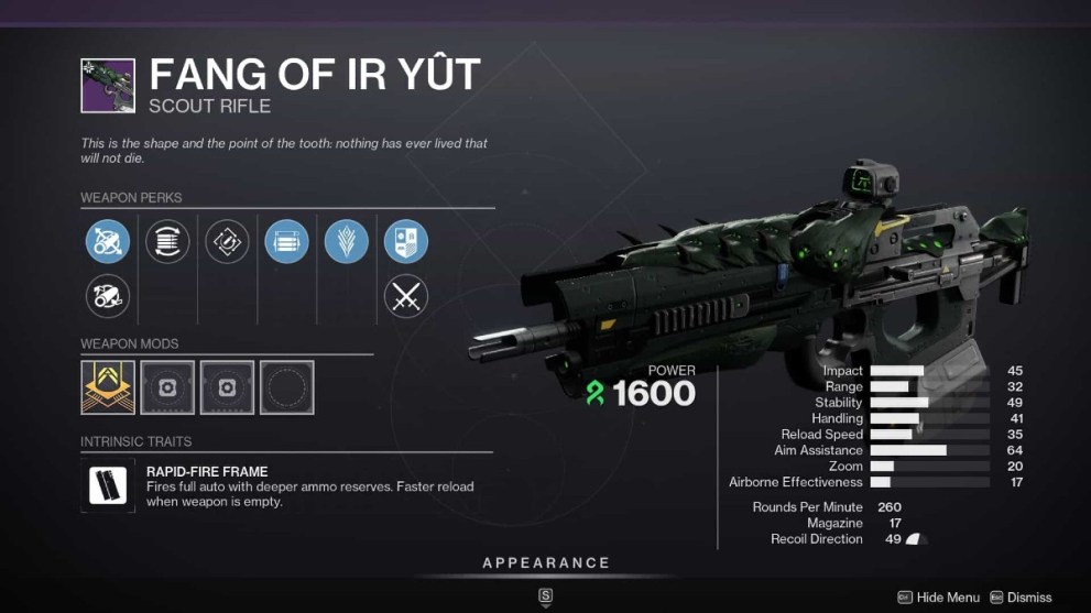 Getting Fang Of Ir Yut Scout Rifle in Destiny 2