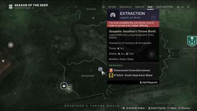 Should you manage to finish the Legend or Master Lost Sector, you will have a chance to get an Exotic drop from the feature loot pool. To examine the loot pool, hover over the Legendary Lost Secotr icon on the map and look at the bottom, where it will tell you if the reward is for Head, Arms, Legs, or Chest Armor.