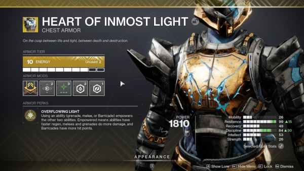 • Exotic Armor – Heart of Inmost Light