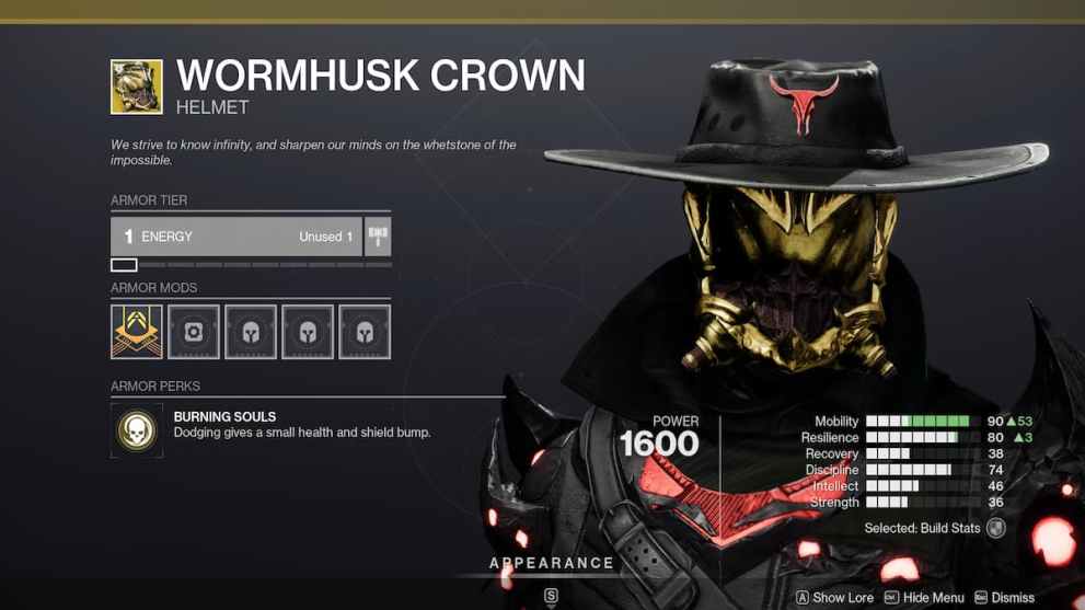 Releasing alongside the Fr0st-EE5 in Season 3, the Wormhusk Crown has been nerfed multiple times for simply being so effective at keeping Hunters alive. Currently, the Exotic helm gives you 67 HP split across your shields and health when you dodge. It doesn’t get simpler than that. But because it works off your dodge, builds that utilize dodging will always be optimal and useful.