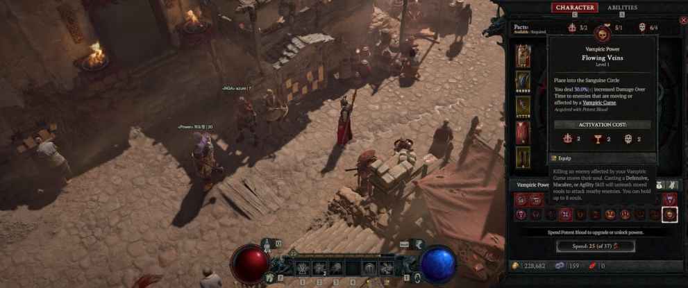 Most of these are pretty straightforward, though the only tricky one you might have trouble with is Tides of Blood, which requires you to activate a Vampiric Power that requires three Pacts. For this objective, we used Flowing Veins, which requires two of each Pact to be activated. It’s worth noting that you only have to activate it once, and you can unequip it after that once you’ve completed the objective.