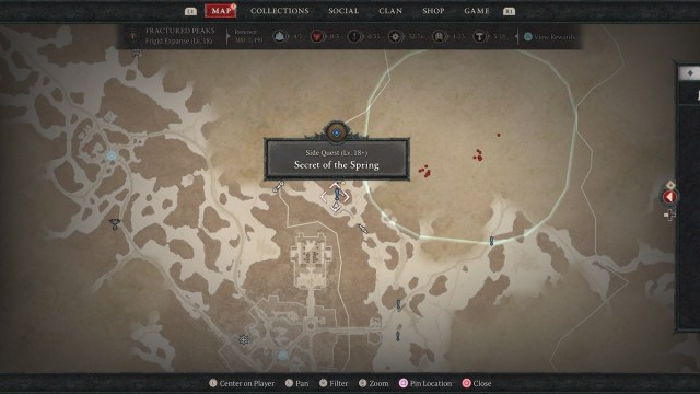 To find the Secret of the Spring quest in Diablo IV, you’ll need to travel to the Fractured Peaks. It actually isn’t far off from Kyovashad. Leave the east gate at Kyovashad and head immediately north.