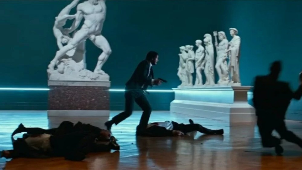 There’s perhaps no other scene that confirms how much of a one-man army John is than this one. He tracks Santino down in a museum, where there’s an extended moment when everyone stands still in preparation for the carnage that follows. John blazes through Santino’s men with headshot after headshot, pursuing his enemy as he kills.