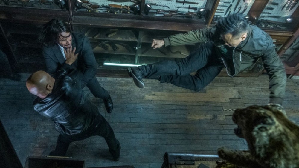 While the John Wick films are renowned for their “Gun Fu” style, the protagonist is more than capable of finishing people with a sword. Case in point is the Glass Room battle, where the main character takes on two of Zero’s assassins. While he gets beat up for much of the fight, he roars back with authority.