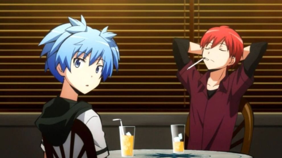 Nagisa and Karma are two classmates in Korosensei’s class 3-E, tasked with assassinating the teacher before he destroys the world. Karma and Nagisa were childhood friends before the show’s events and continued their friendship as close friends during their time in Class 3-E.