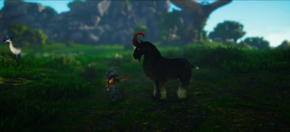 After that, you’ll occasionally notice ‘The Meat Eater’ from the tutorial pop-up around the world, trying to attack a different kind of creature. Fend off the foe and you’ll then be able to tame the new mount. We’re particularly pleased with this towering black mountain goat we obtained. It has red eyes!