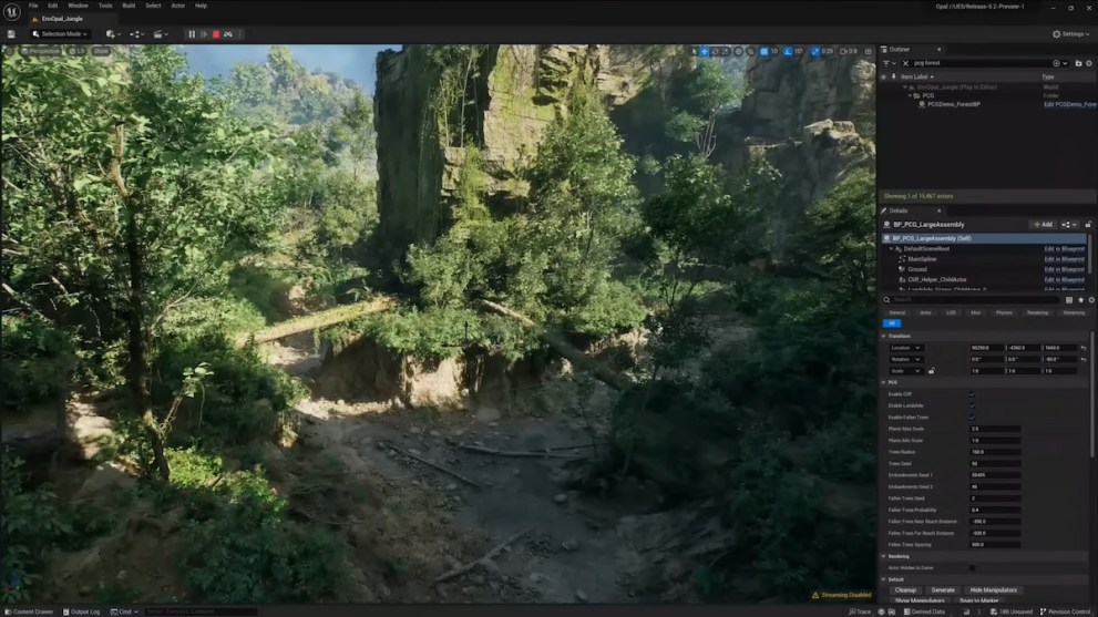 Unreal Engine 5.2 has done exceptional work on foliage, with plants being able to interact with objects and actually bend out of the way instead of clipping through the player. Not only that, but developers can add elements into the environment and the engine will procedurally incorporate themselves into the world in ways like shifting trees, plants, fog and rocks to seamlessly blend everything together.