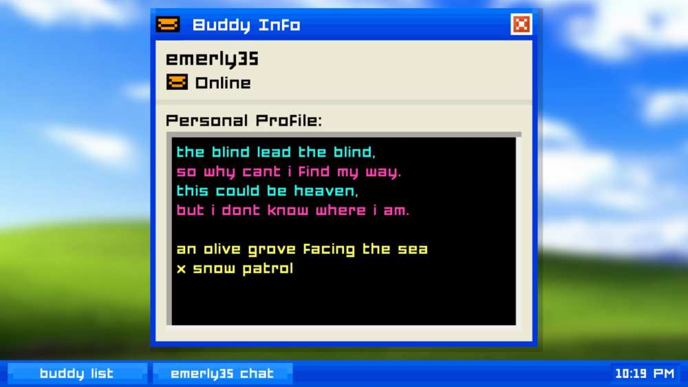 Experiencing these sights, sounds, and interactions again for the first time is a pleasant stroll down memory lane, invoking fond memories of what it was like to be young again with things like Away Messages. Just hearing the door opening and closing sounds just makes me want to go to AOL and log into my Jonnysunamy account (yes, I didn’t know how to spell Tsunami).