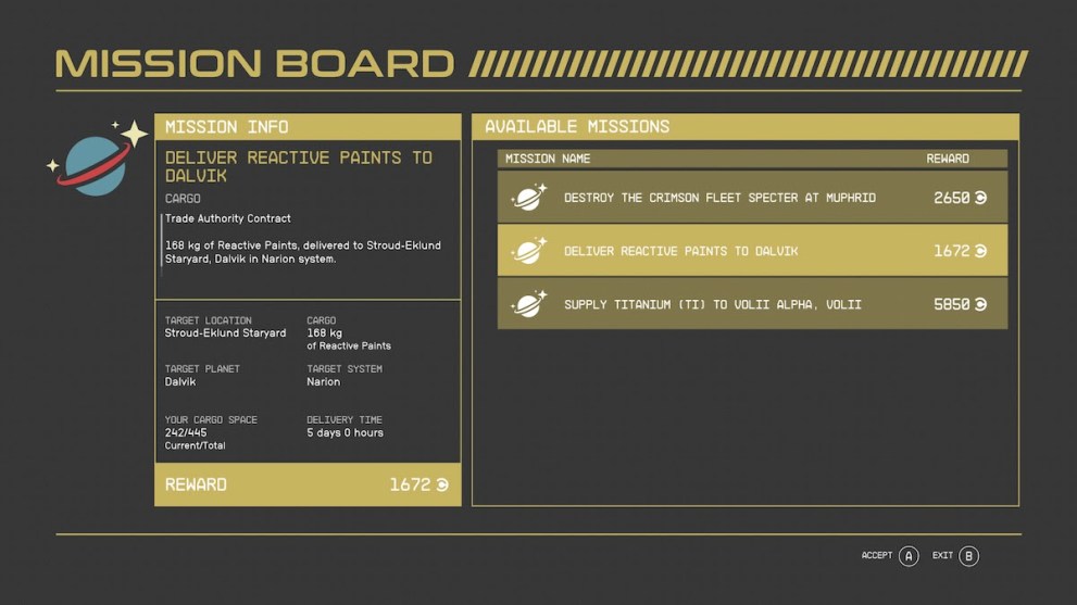 Even though you don’t have a truck per se, you can still make a fine living off of your ship while just running a few jobs. Or a lot of jobs, totally up to you. Not only is it an honest way to make a few credits, but you can also get yourself acquainted with the different systems in the galaxy. Upgrade your ship as much as possible to let it provide you with the utmost potential in your new line of work.