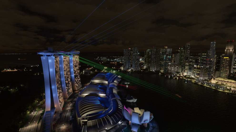We also get a bit of animation with the Singapore Cable Car, while even default Microsoft Flight Simulator landmarks, such as the Marina Bay Sands Resort, have been improved with the iconic evening laser show. It’s very nice to see that Orbx went above and beyond, implementing something that I definitely haven’t seen before in Microsoft Flight Simulator.