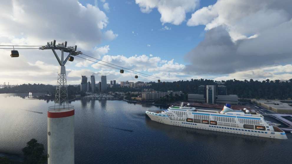 Speaking of said approach, the iconic “traffic jam” of cargo ships crowding the Singapore Strait has also been reproduced, improving the spectacular view from the cockpit, alongside large areas of the massive port.