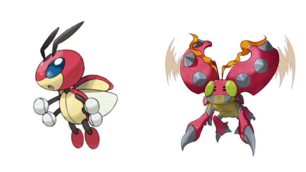 While they both have big compound eyes, Ledian’s have a sparkling white pupil, which makes its little face look significantly softer and more adorable than Tentomon’s soulless green stare. Ledian also has little white hands, which make this small bug much more friendly and approachable looking in comparison to Tentomon’s big, pointed limbs.