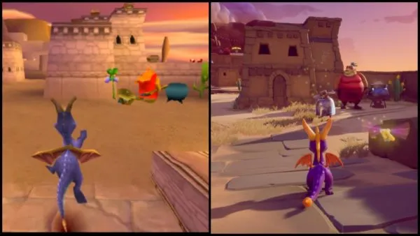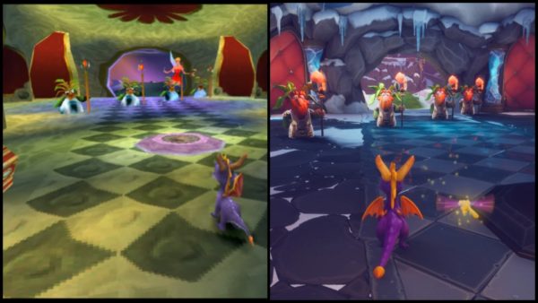 The Reignited Trilogy packs in Spyro the Dragon, Ripto’s Rage, and Year of the Dragon, all remade with Unreal Engine 4. There are a variety of changes brought to the games, but simply looking at the original and the remakes side by side shows just how much work has gone into the graphical update. We’ve compiled a few in-game screenshots put next to their original counterparts just to illustrate how drastic this difference is. You can click on each image to bring up a full-size view.