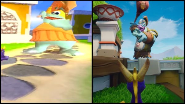 One of the most impressive changes brought to the first Spyro game is with the drastic redesigns that have happened to all the dragons Spyro saves. In the original these dragons were mostly generic palate swaps of each other, but in the Reignited Trilogy each and every one has a unique design. The one we’ve featured is Tomas in Gnorc’s Cove, but it’s great fun to see how different and imaginative each dragon is in the remake.