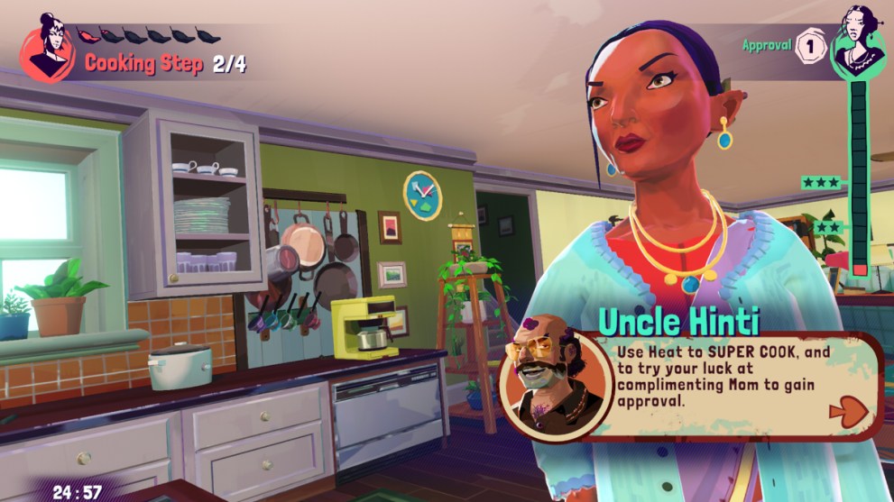 Firstly, it’s here where Jala uses the time spent with her mother to attempt to repair their rocky relationship and take the first steps to getting close to her again. While they mainly stick to a conversation about the food (at least in this demo gameplay), there are small hints at the awkward dynamic that has developed between the two, such as when Jala’s mother insists she wash her hands a second time with a stern “are you here to cook, or to argue with your mother?”.