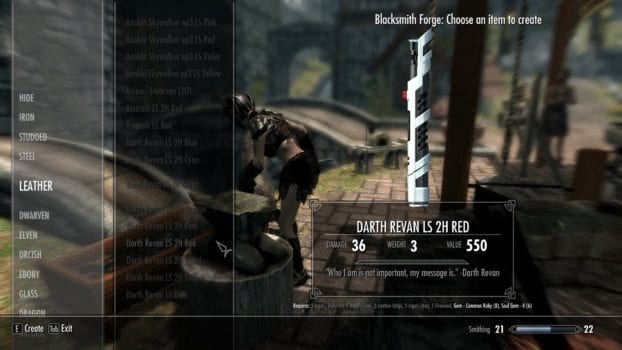 Darth Vader in Skyrim (https://steamcommunity.com/sharedfiles/filedetails/?id=208298065)