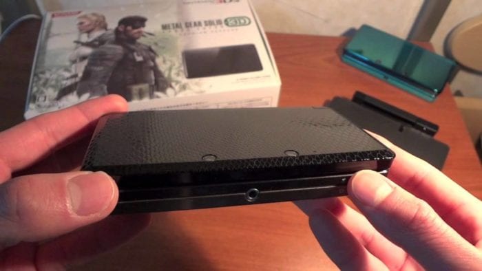 This Metal Gear Solid Snake Eater 3DS features a black snakeskin exterior with a camouflage design on the inside.