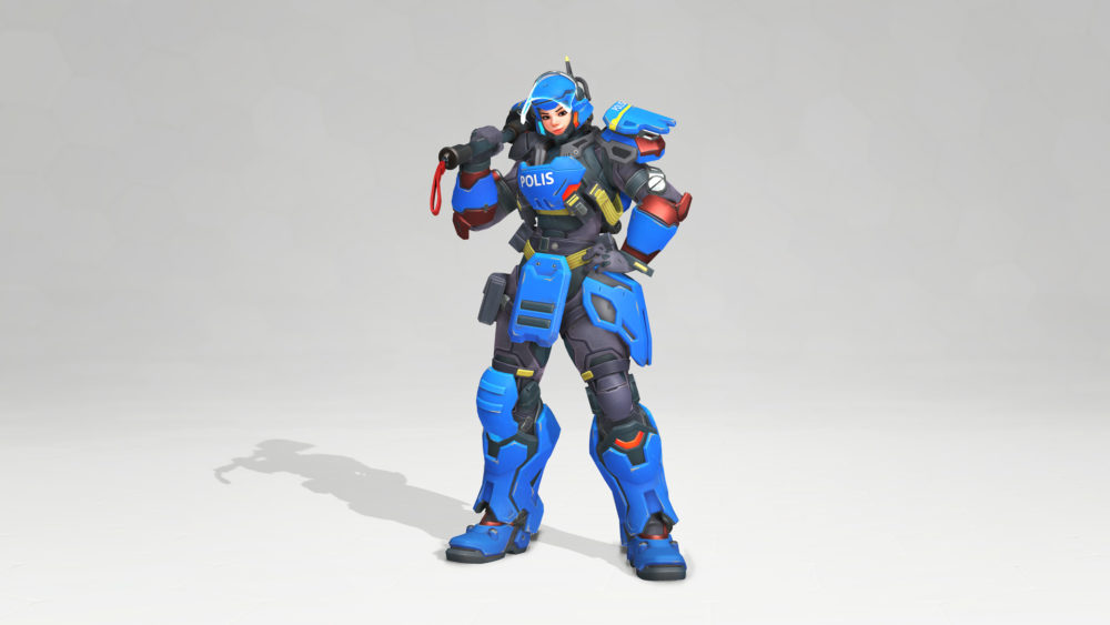 Much like Pharah’s physique and kit lends well to her being dressed as an astronaut, Brigitte’s whole playstyle is very similar to that of a Riot Police officer.