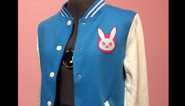 D.Va Varsity Jacket – Here’s a cotton varsity jacket, complete with D.Va’s bunny logo on the front. Splashed with light blue and white, show off your support for the pro StarCraft gamer by wearing this out.