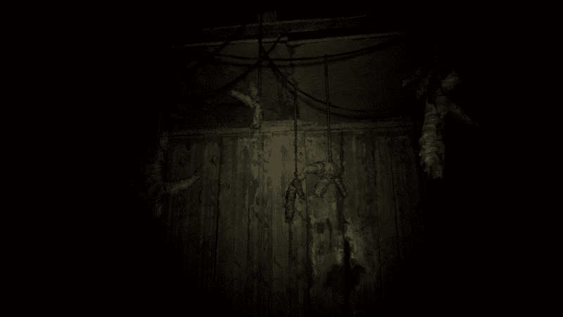 There are a group of voodoo dolls hanging in the room leading to the basement – which is coincidentally blocked off. The purpose of these dolls is uncertain, although they seem to multiply till there’s seven of them. Seven seems to be a magic number for the demo, with the number being in the letter ‘T’ in the title for the game’s pre-Resident Evil VII state, “Kitchen”; as well as there being seven ghost sightings.